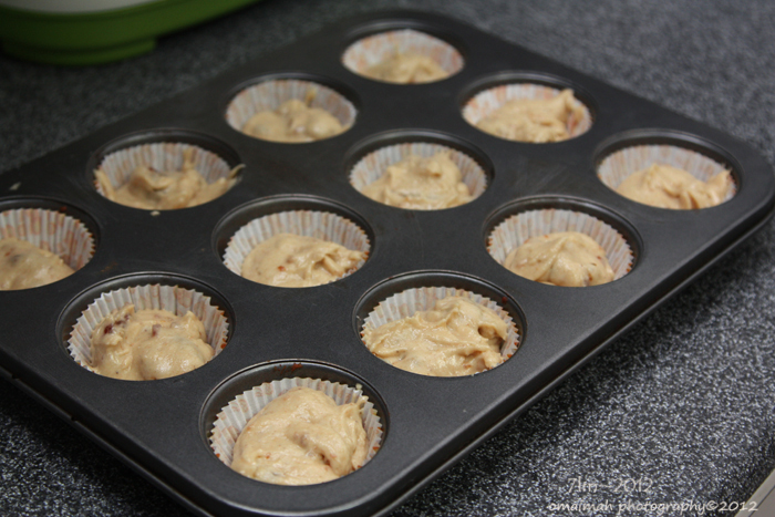 ونحطهم بالقوالب ونحاول بالملعقه نخليها متسوايه وندخلهم الفرن قدنا فاتحينه من قبل يعني يكون حامي ..