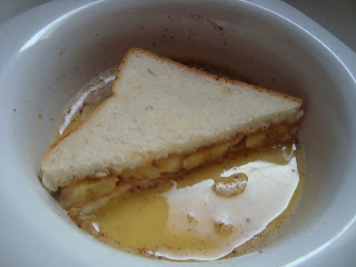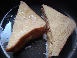 نسكر فوق الموز بقطعة توست ثانية، و نضغط عليها شوي